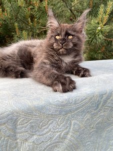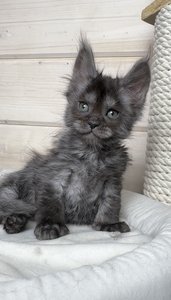 Мейн-кун дымчатого цвета, как никакой другой, похож на рысь или дикую енотовую кошку. Когда в дом приходят гости, морально не готовые увидеть такое чудо, выплывающий 7-10 килограммовый красавец в метр длиной производит неизгладимое впечатление.